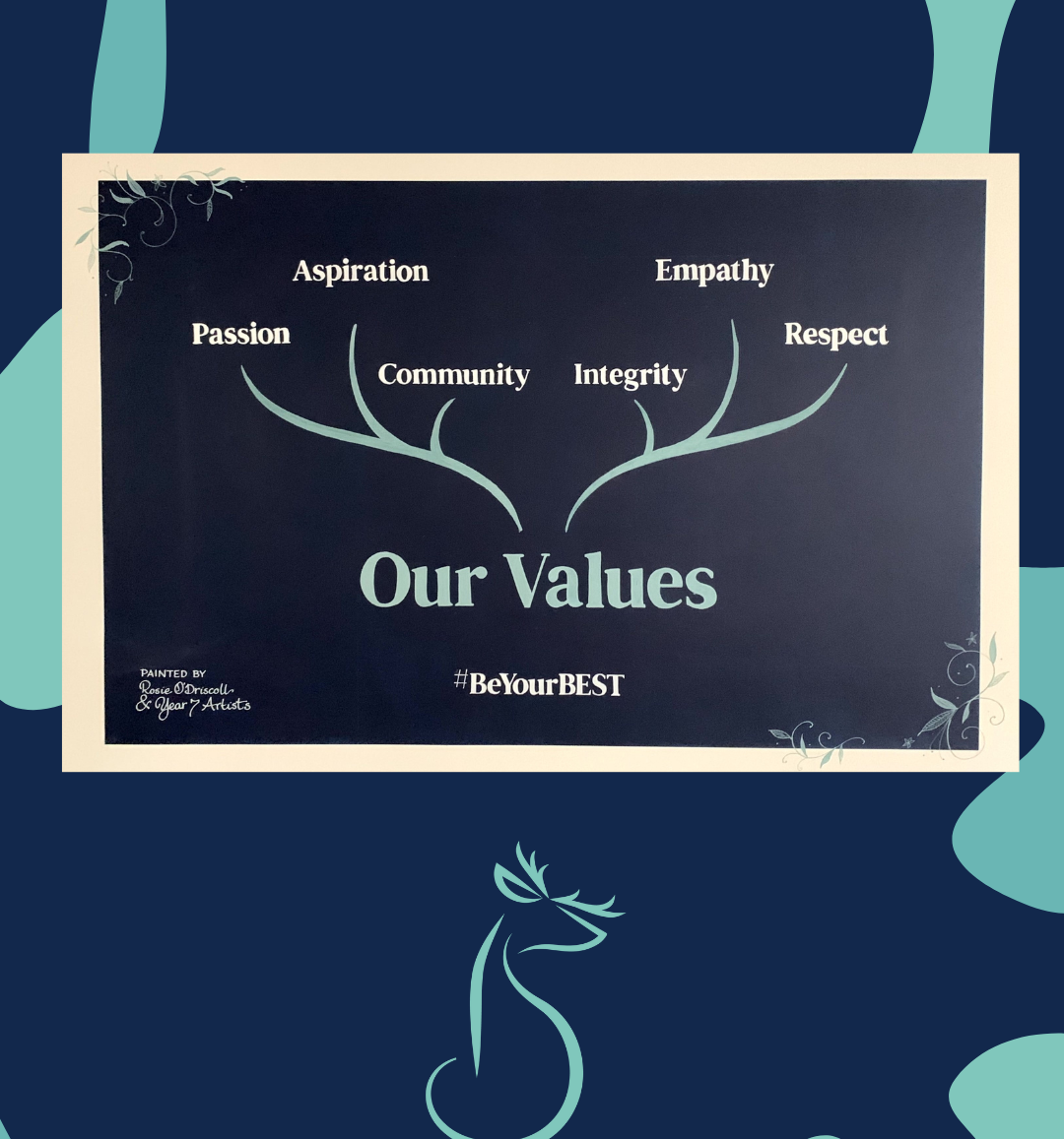 The Broomwood Girls dining room had a re-vamp over the holidays. With the help of artist and professional sign writer, Rosie O’Driscoll, who also runs some of our art workshops, pupils demonstrated great care and skill to complete a fabulous painting featuring the Broomwood Values: Aspiration; Community; Integrity; Passion; Empathy & Respect.