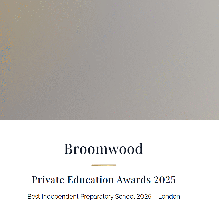 Broomwood is delighted to have been named Best Independent Preparatory School 2025 – London in the Private Education Awards 2025, recognising our distinctive approach to education and commitment to academic excellence, character, and care.
