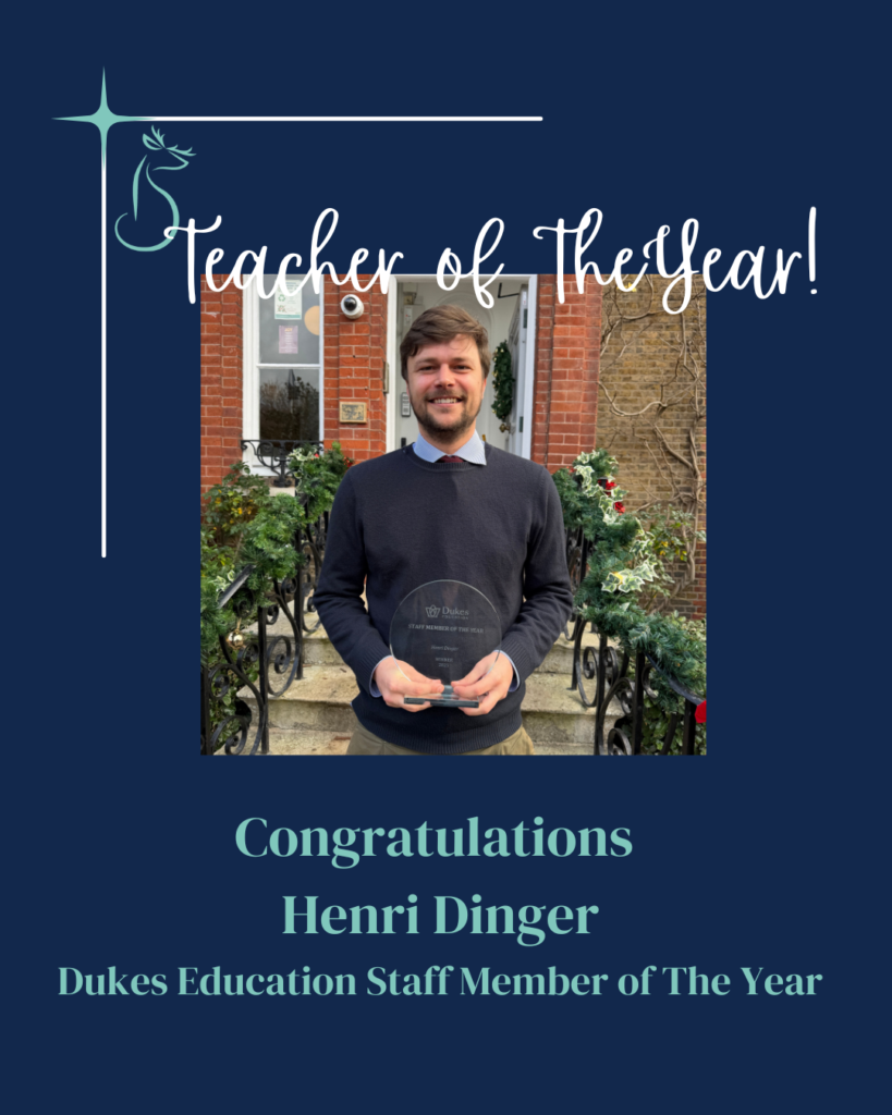 As part of the wider Dukes community, it is excellent to see members of staff recognised for the difference they make in their schools. Henri’s award is a reflection not only of his hard work, but also of the respect and appreciation he has earned from those around him.